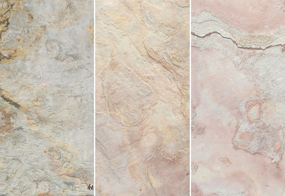 Natural Slate Veneer combines the natural stone surface of slate with the flexibility of a veneer. Thanks to a special technique, only a fraction of the natural material is required in the manufacturing process. There are many new applications for this flexible composite material with a thin backing layer. It comes into its own wherever pure slate would be too heavy, too inflexible or too thick. That means slate can, for instance, also be used on rounded or curved surfaces, as well as in conjunction with other materials. With its flexible material properties, slate veneer opens up numerous new application opportunities for natural slate.